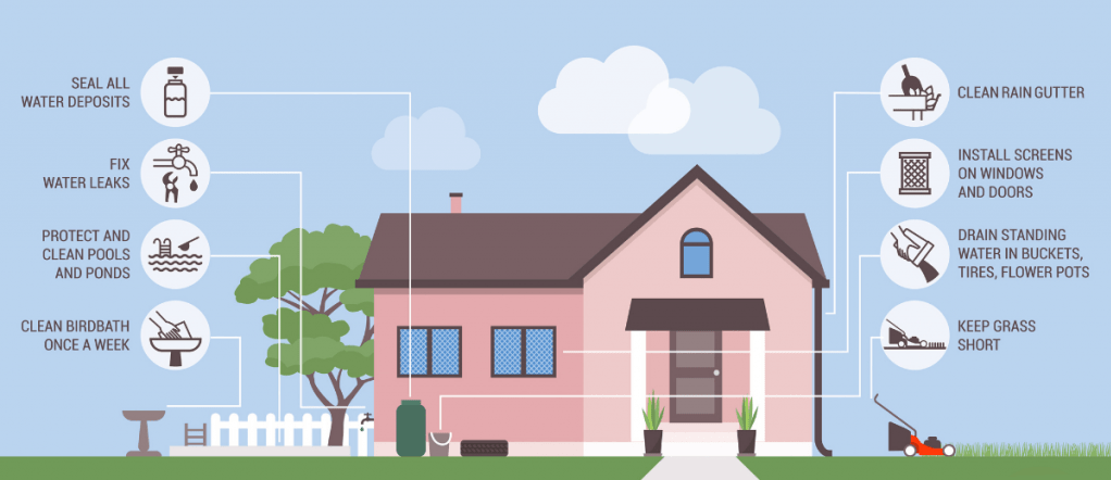 Our mosquito exterminators inspect your property to determine potential sites where adult mosquitoes breed and rest. These sites include structural and natural areas, such as flat roofs, blocked or poorly drained rain gutters, drainage lines from air conditioning units, as well as landscape features including ditches, tree holes, heavy weeds or shrubs.