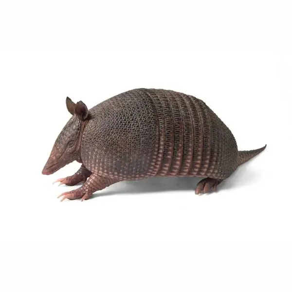Approximately 20 species of armadillo exist, but the nine-banded armadillo is the only one found in the United States. Armadillo means “little armored one” in Spanish and refers to the presence of bony, armor-like plates covering their body. When startled or scared, these armadillos can jump 4 to 5 feet high in the air. Found throughout the southeastern United States, these digging and burrowing mammals are a nuisance to homeowners as they destroy the landscape in their pursuit of food and shelter.